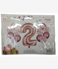 Casey 13pc Rose Gold and White Balloon Set Nr.2 - 13Pc set consisting of 1 x 81cm Number Balloon, 6pc 30.5cm Rose Gold Balloons, 6pc 30.5cm Confetti Balloons Retail Packaging No Warranty
