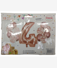 Casey 13pc Rose Gold and White Balloon Set Nr.4 - 13Pc set consisting of 1 x 81cm Number Balloon, 6pc 30.5cm Rose Gold Balloons, 6pc 30.5cm Confetti Balloons Retail Packaging No Warranty