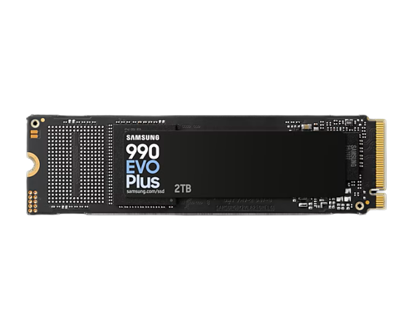 View ProductSAMSUNG 990 Evo Plus 2 TB NVMe SSD - Read Speed up to 7250 MB/s Write Speed to up 6300 MB/s Random Read up to 1000000 IOPS Random Write up to 1350000 IOPS PCIe® 4.0 x4 / 5.0 x2 NVMe 2.0 V-NAND TLC/ In-house controller/ HMB(Host Memory Buffer)