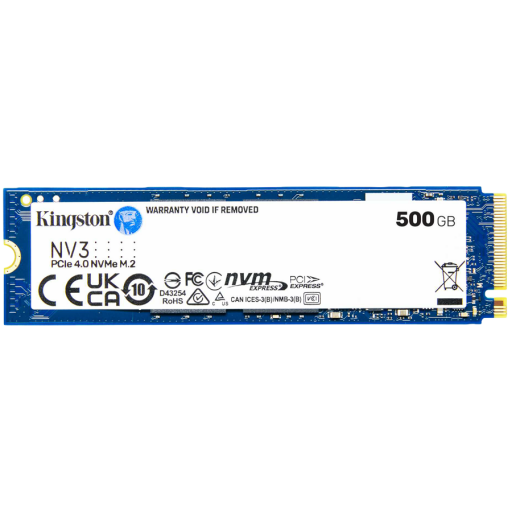 Kingston 500GB NV3 SSD M.2 2280 PCIe 4.0 NVMe, Read: 5,000/ Write: 3,000MB/s | Brand: KINGSTON | Category: SSD Client | Warranty: 60 months | EAN: 740617344806 | Supplier Link: https://content.it4profit.com/itshop/itemcard_cs.jsp?ITEM=240806123941636595&THEME=asbis&LANG=en