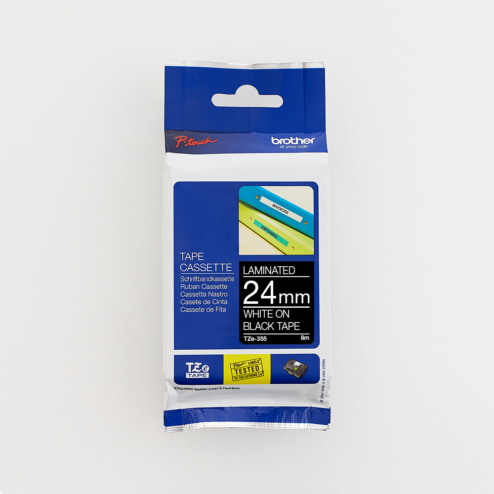 Brother 24MM Black on White Strong Adhesive Laminated tape