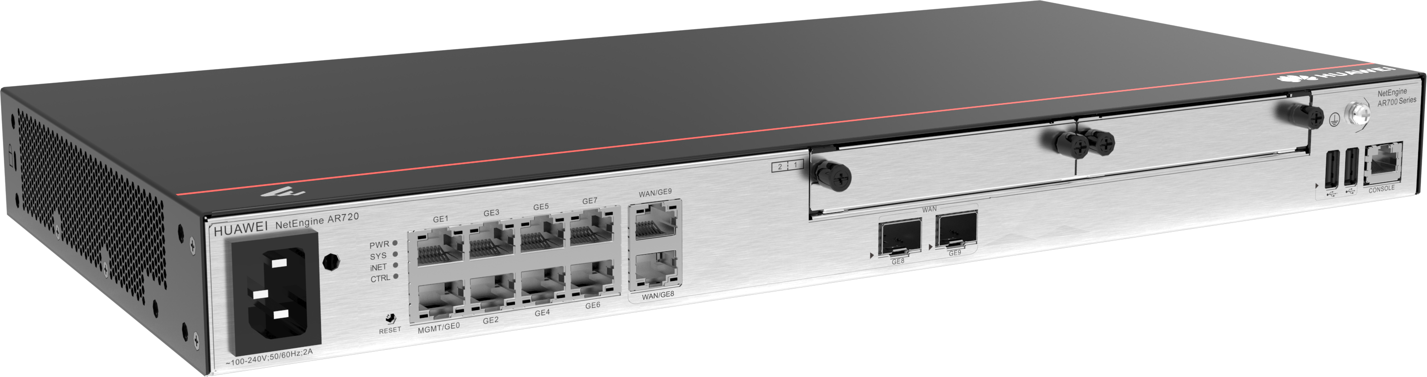View ProductAR720 2*GE combo WAN 8*GE LAN 2*USB 2*SIC up to 1200 users forwarding performance 6Gbps