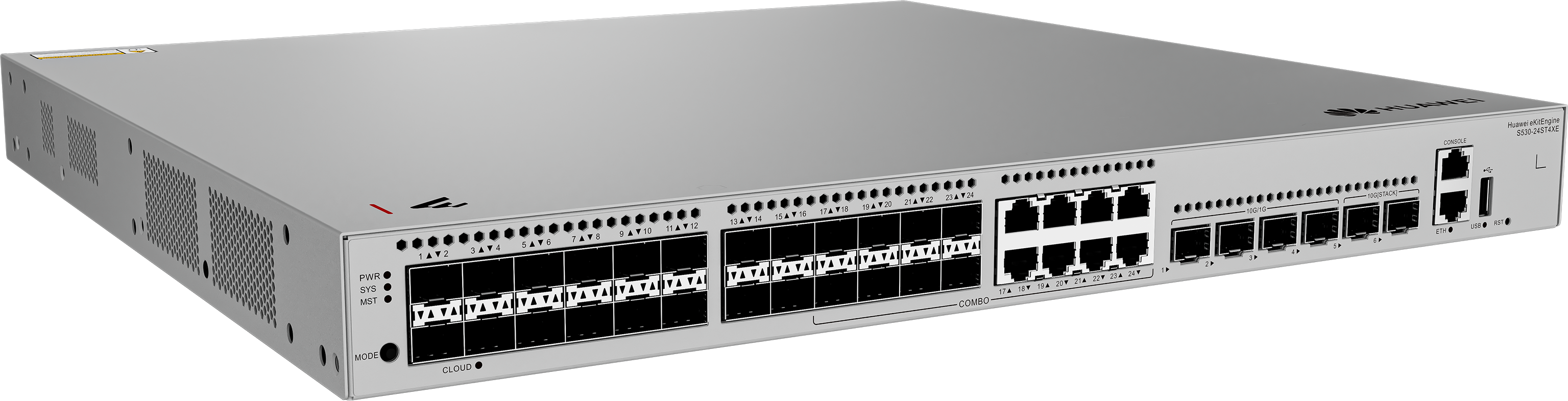 View ProductS530-24ST4XE 24*GE SFP ports 8 of which are dual-purpose 10/100/1000 or SFP 4*10GE SFP+ ports 2*12GE stack ports